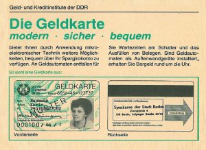 1982 erfolgte die Umstellung der veralteten Rechentechnik auf ESER („Einheitliches System Elektronischer Rechenanlagen“). Im Zuge der Umstellung entstanden erste Schalterterminals und Geldautomaten – zuerst in Berlin, dann in Dresden, Leipzig und Karl-Marx-Stadt.
